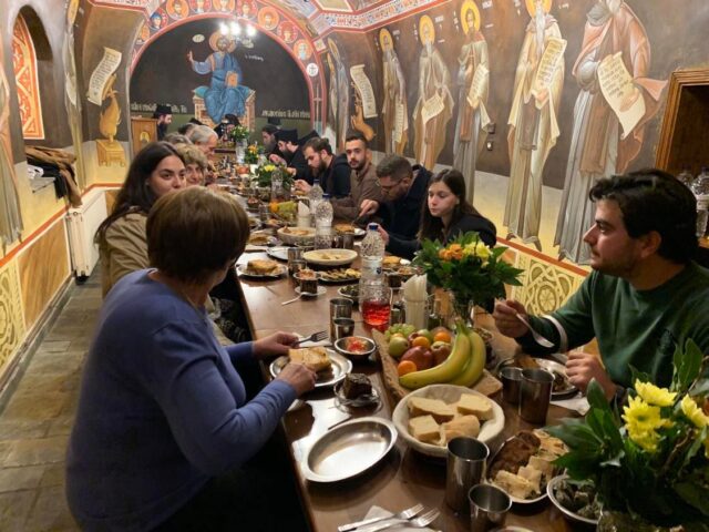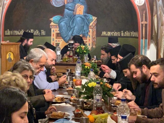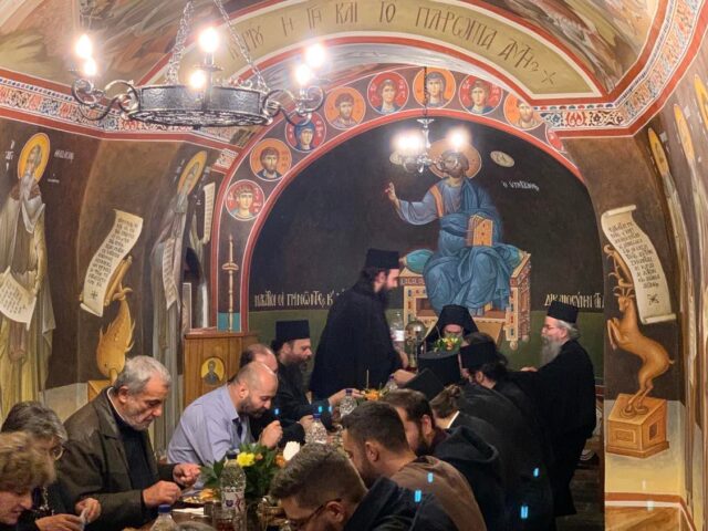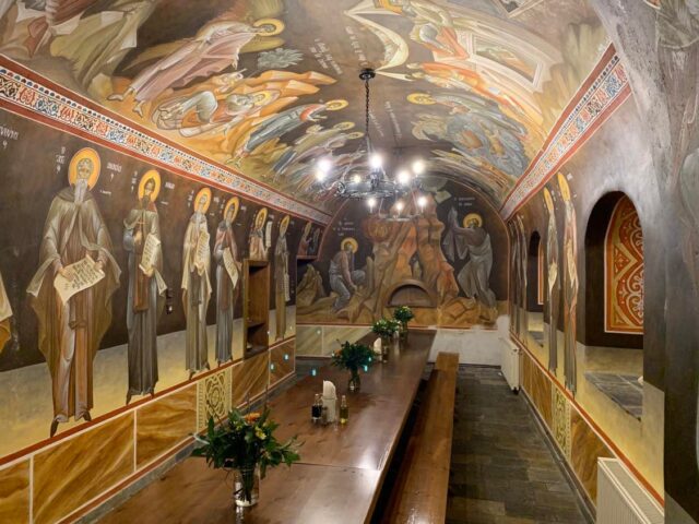 Δείτε την τράπεζα του αγαπημένου σας μοναστηριού. Οι θαυμάσιες τοιχογραφίες και η φιλοξενία του μοναστηριού στις ημέρες μνήμης των Αγίων Αναργύρων δείχνουν στον επισκέπτη της βαθιά αγάπη και στοργή της αδελφότητας του Μοναστηριού.